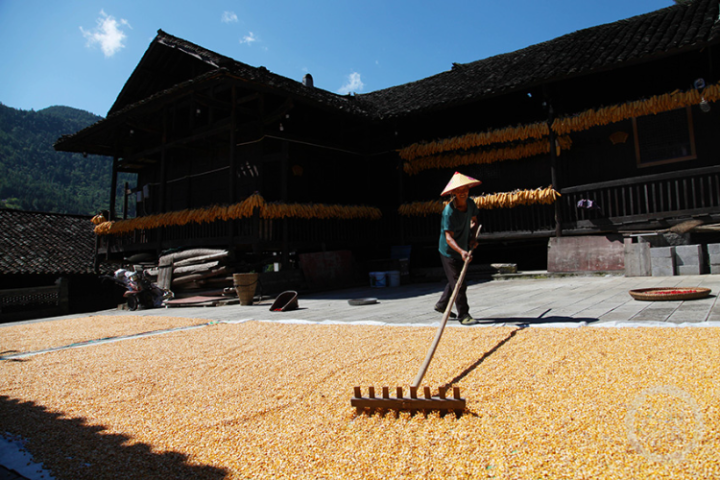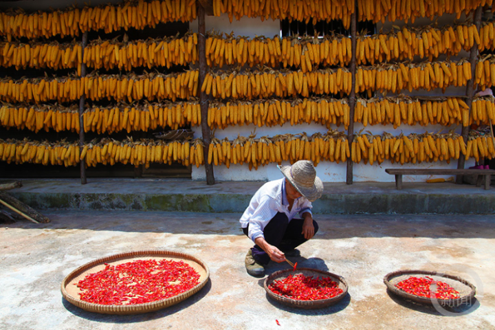 《传统村落晒秋忙》组照五。上游新闻签约摄影师杨敏摄于重庆市黔江区